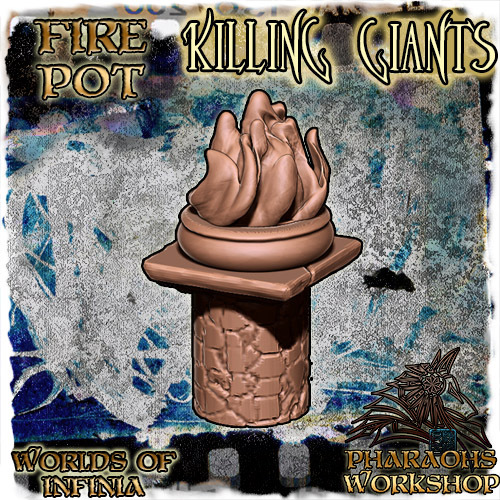 The free fire pot is part of our project "Scenes from a memory - Killing Giants". Are you ready to explore the worlds of Infinia? All models are perfect for Fantasy Dungeon Crawl and RPG games like Dungeons and Dragons (DnD), Pathfinder, Hero Quest, Imaginary or similar.The models come in 28-30mm standard.